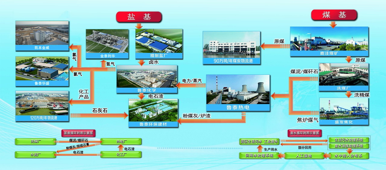 集团公司按照“一体两翼、循环发展”战略,以打造循环经济产业体为目标,培育形成了能源、化工、新材料三大主业和新能源、高端精细化工、供应链物流等多产业竞相发展、相互支撑、协调并进的产业格局。能源板块山东本部两座生产矿井太平煤矿、鹿洼煤矿均为国家一级安全生产标准化矿井,生产能力195万吨。太平煤矿是全国第一家膏体充填绿色开采矿井,膏体充填技术处于国内一流、世界领先水平。鹿洼煤矿建成全市第一个智能化综采工作面,打造了智能开采的“鹿洼模式”。按照“轻资产”运营理念,创新传统煤矿经营模式,先后托管七座煤矿,分流职工近千人,年均节约人工成本近亿元。2020年6月,完成新疆明基能源75%股权收购,成功获得资源总储量10.7亿吨、可采储量5.08亿吨、规划产能500万吨的白杨河煤矿,发展后劲显著增强。化工板块构建了以盐基(盐、卤水、化工、精细化工、新型建材)和煤基(煤、电、化工、精细化工、新型建材)两链并举的循环经济产业体,年生产离子膜烧碱36万吨、PVC37万吨、氯乙酸5万吨、水泥100万吨,被山东省人民政府列为重点培育的循环经济型企业之一和支持发展的化工园区之一。新材料板块已形成化工新材料、高分子复合材料、医药辅材三大产业布局。化工新材料产业利用鲁泰化学丰富的氯气氢气资源,与德国CABB公司、山东庚彩等化工新材料行业领先企业合资合作,推动企业从基础化工向高端精细化工转变。高分子复合材料产业主要依托集团公司全国首家石墨烯高分子复合材料研发平台,在太平煤矿整体规划建设了年产20万吨新材料产业园。现已形成石墨烯PVC导电料、导热复合材料、PVC环保注塑料、PVC挤出料4大系列、44种产品的研发及产业化。与烟台佶楷合作生产的PTS塑料托辊高分子复合材料项目建成投产,多项高端精细化工和新材料技术填补国内空白。医药辅材产业是集团公司于2022年成功收购上市公司黄山胶囊29.99 %股份后又一重点扶持发展的新材料产业。黄山胶囊是国家高新技术企业,产品全面满足中国、欧盟和美国现行GMP法规要求,市场占有率连续20多年稳居国内前列。