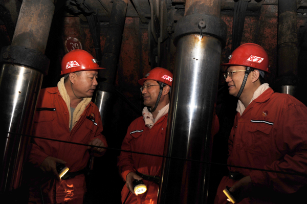 会后,李大普局长一行深入到鹿洼煤矿井下采二工区23下03综采工作面,详细检查了工作面安全生产情况,仔细查看了煤机喷雾、煤机司机证件、工作面支柱压力、工作面顶板等情况,随后李大普局长又到1号过渡站等处,进行检查指导。李大普局长对鹿洼煤矿井下安全质量标准化、精细化管理,隐患排查治理,文明现场管理等工作给予充分肯定,要求鹿洼煤矿继续再接再厉,扎实抓好安全生产工作。