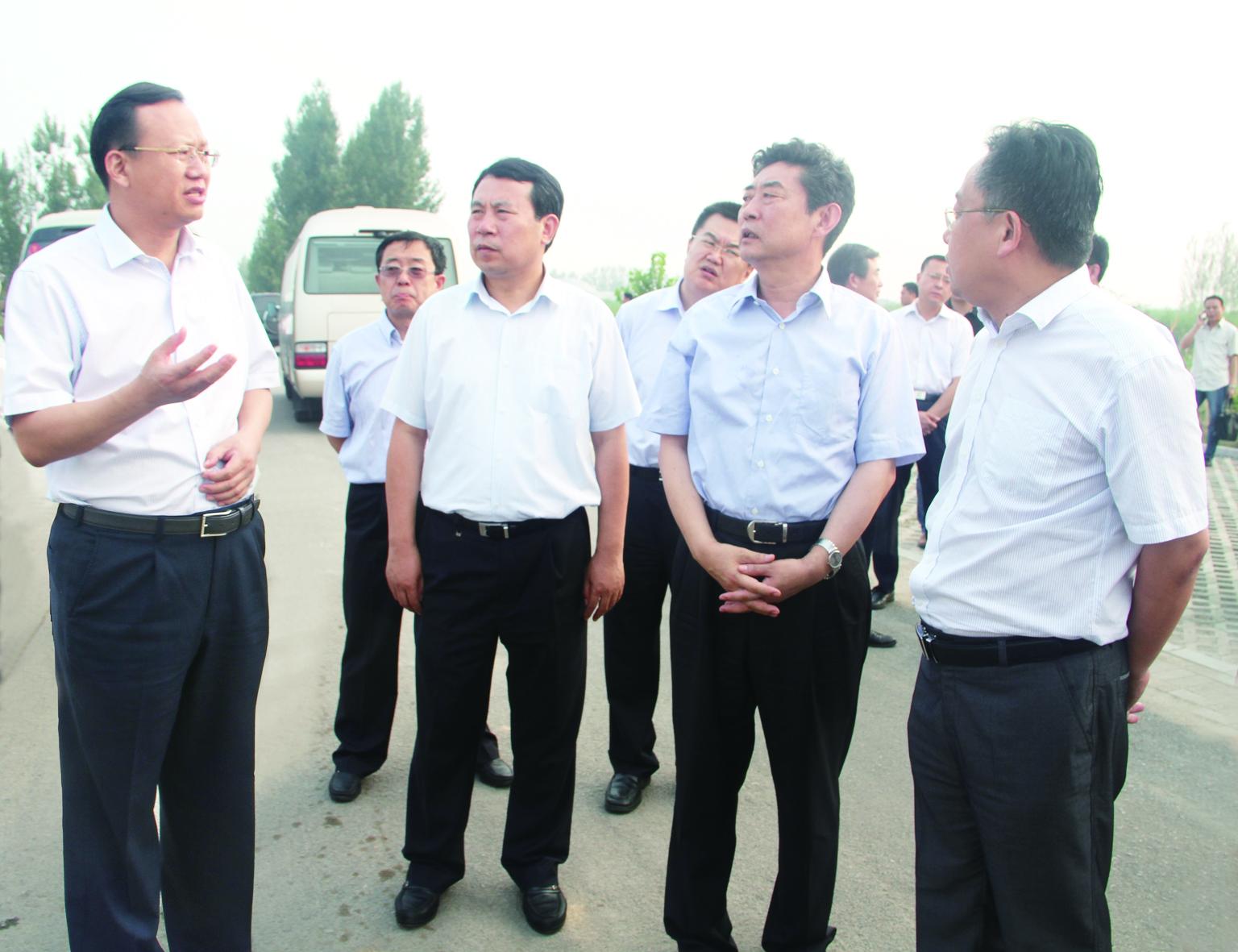 7月28日,副省长邓向阳在市委常委、常务副市长刘中会,副市长田志锋陪同下到金威煤电调研安全生产和环保工作。鱼台县委书记、县人大常委会主任李志红,县委副书记、县长宫振华,鲁泰煤业总经理李合军等陪同调研。