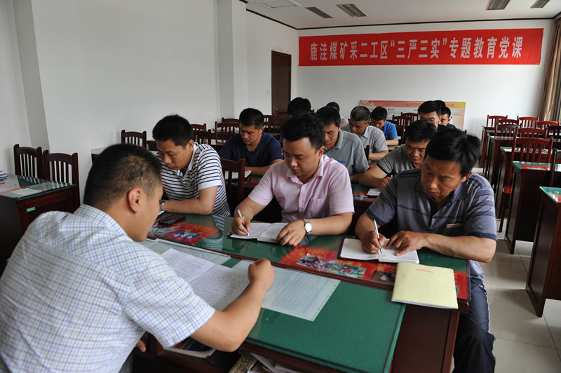 继6月1日鹿洼煤矿召开"三严三实"专题教育党课之后,该矿各党支部迅速行动起来,在短短三日内,相继召开了党支部专题组织生活会,利用班前会和班后会的时间,由各单位的党支部书记主持上党课,传达鲁泰鹿党发《关于开展"三严三实"专题教育实施方案》及在专题党课上的党委书记刘岭和矿长贾广海的讲话精神。并结合单位实际生产及班组建设情况,将"三严三实"具体要求传达到最基层、传达到每个普通党员,充分调动和发挥基层党组织的战斗堡垒作用及广大党员的先锋模范作用。
