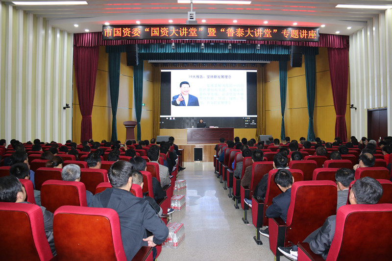 为进一步深入学习领会党的十九大精神和2018年全国"两会"精神,加强推动新旧动能转换,贯彻落实"大学习、大调研、大改进"工作部署,4月14日,集团公司与市国资委联合举办"国资大讲堂"暨"鲁泰大讲堂"专题讲座。大讲堂邀请中央党校经济学部教授、博士生导师陈宇学和著名经济学家、国家发改委学术委员会学术委员会研究员、中国国际经济交流中心首席研究员、中央政治局授课专家张燕生到场授课。市国资委党委书记、主任何锡明,市国资委副主任刘艳,市监事办主任张丕麟;集团公司总经理李合军、副总经理关延忠聆听讲座。