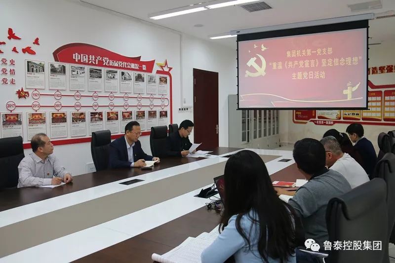 10月22日,集团公司机关第一党支部在党员活动室,分两个阶段先后开展了“重温《共产党宣言》、坚定信念理想”和“学习先进典型、争当先锋党员”主题党日活动。集团公司党委书记、董事长李合军,董事会秘书肖作飞以普通党员身份参加活动。机关第一党支部组织委员、人力资源部经理康甲主持会议。