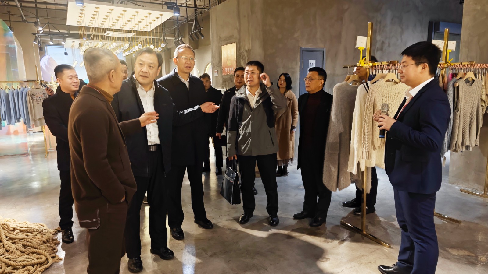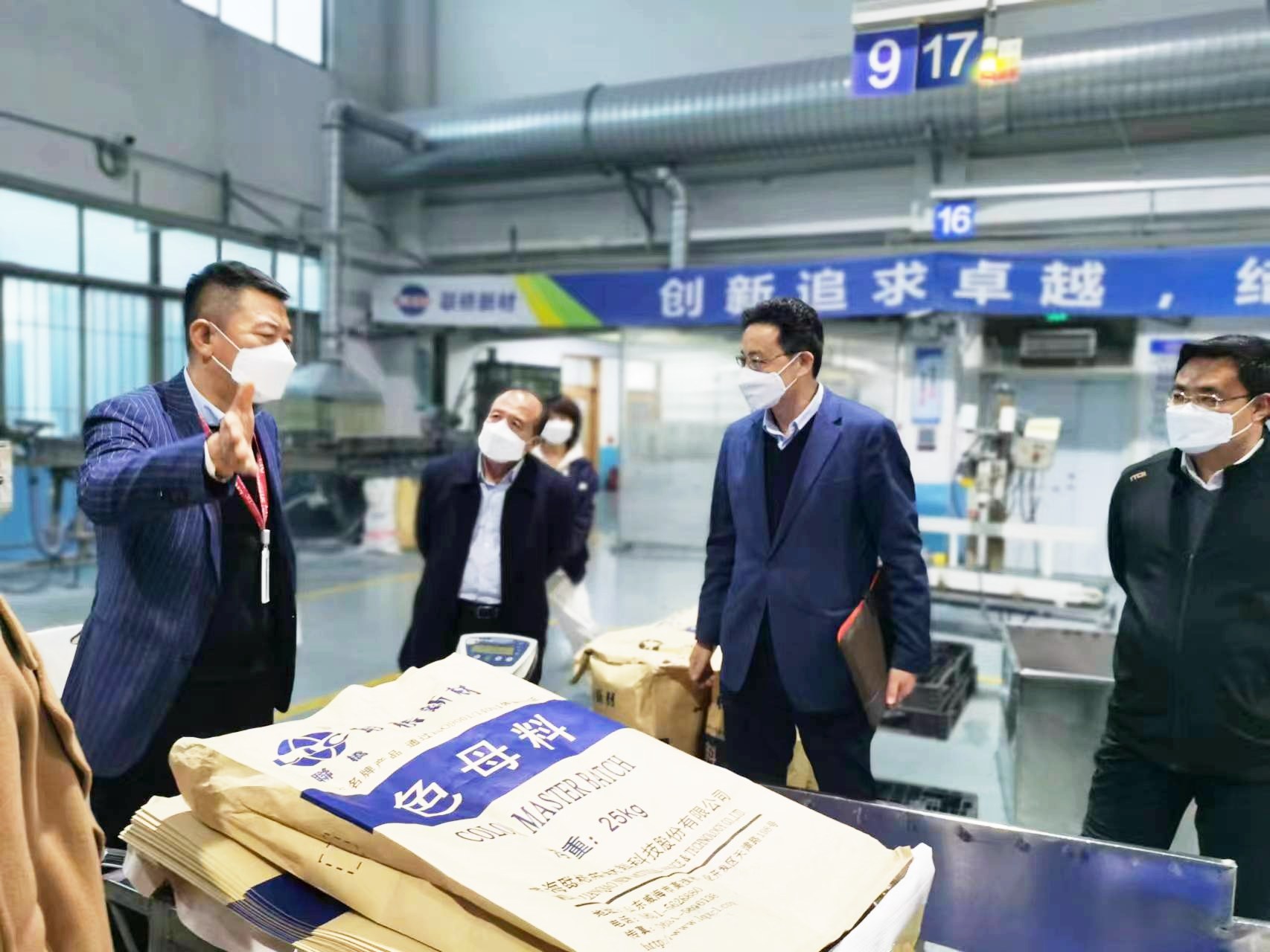 在威海期间,张华山、李合军一行实地观摩了国家毛衫纱线资源共享平台、新材料科技展馆、党建文化中心、联桥人力资源中心。陈恒彬携集团公司相关人员考察了联桥新材料改性聚乙烯色母料生产车间和多功能复合膜生产车间。